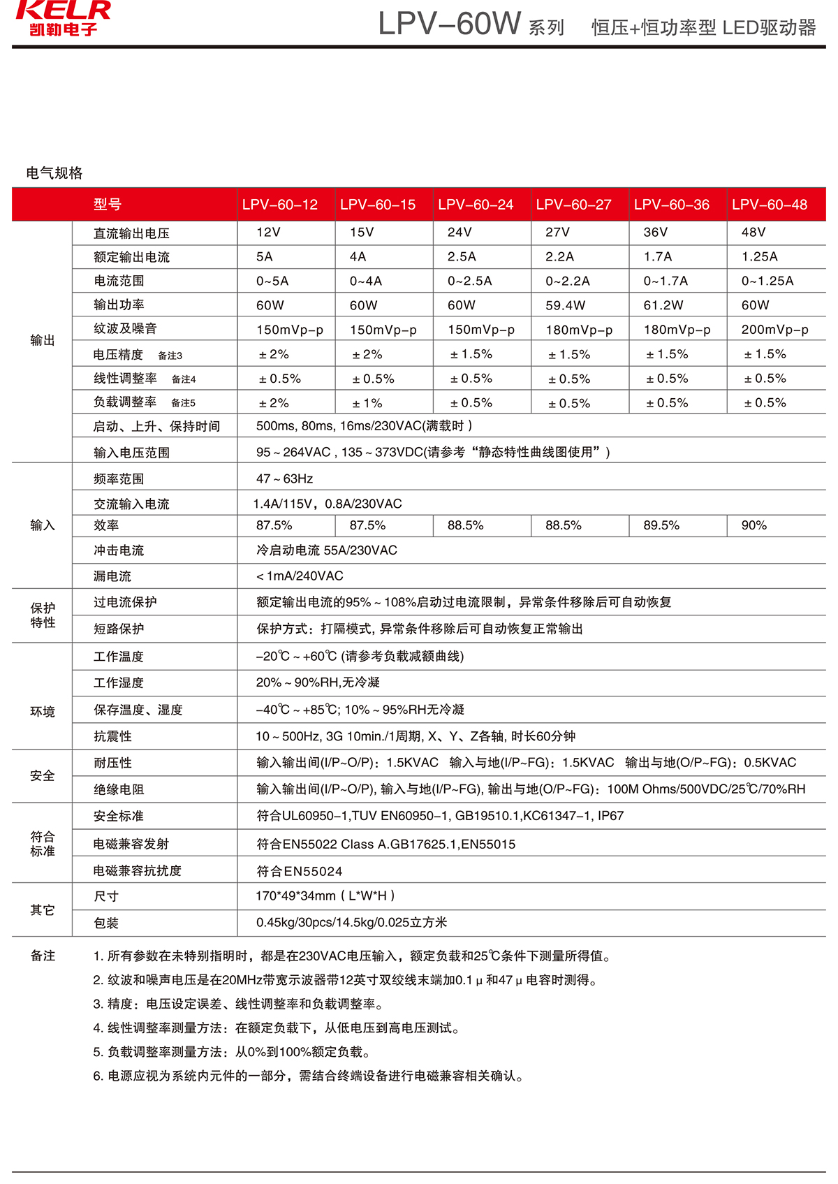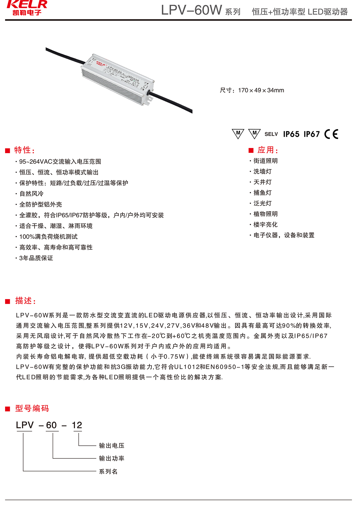 LPV-60-12 系列 恒压+恒功率型LED驱动器