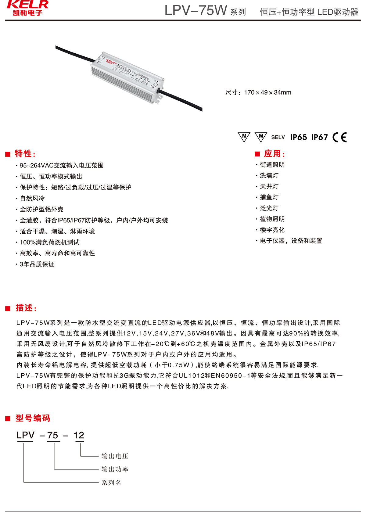 LPV-75-12 系列 单路输出开关电源