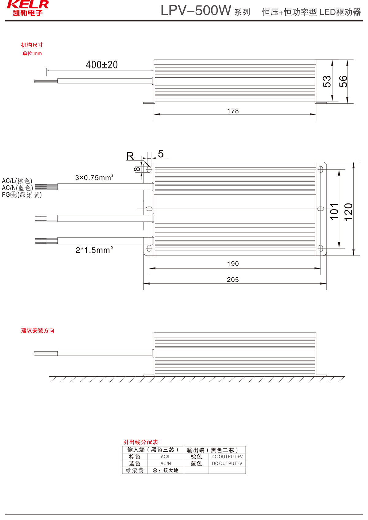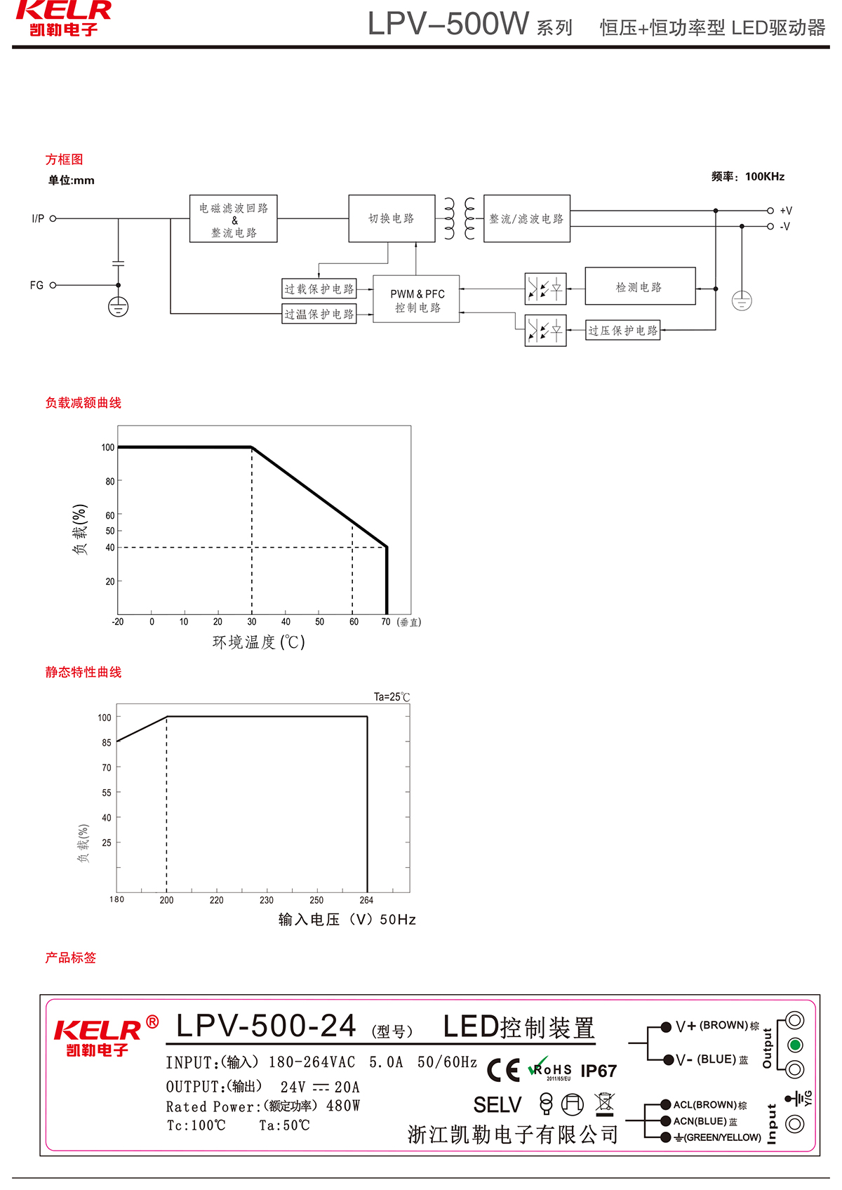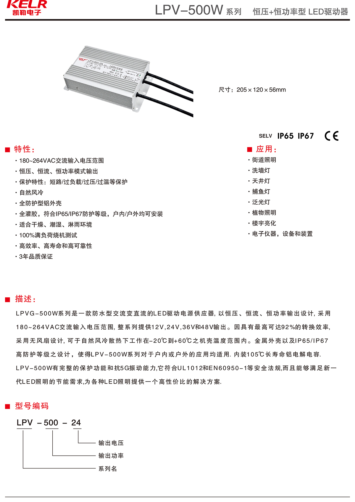 LPV-500-24 系列 恒压+恒功率型LED驱动器