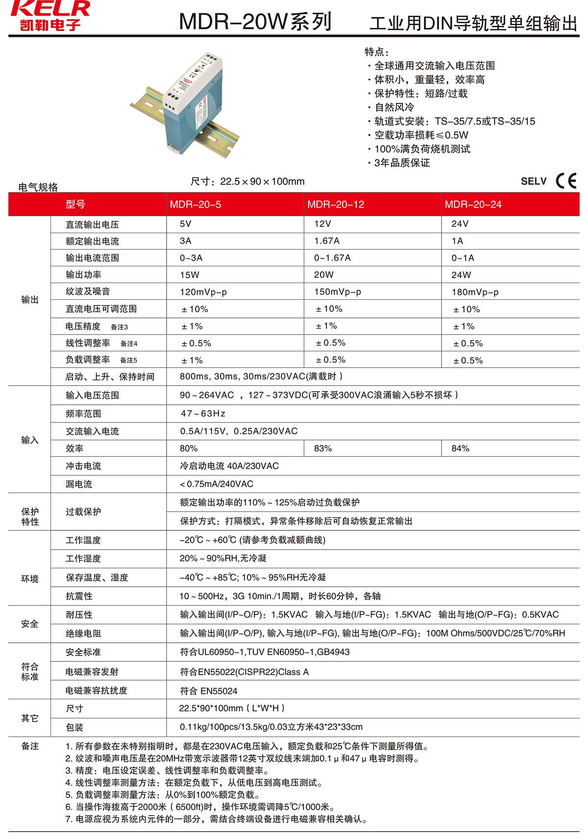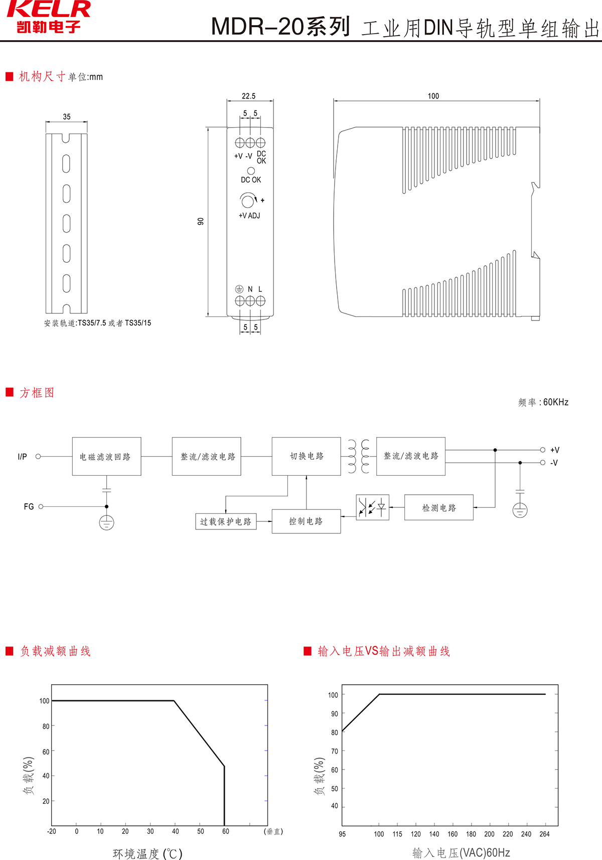 MDR-20W 系列 工业用DIN导轨型单组输出