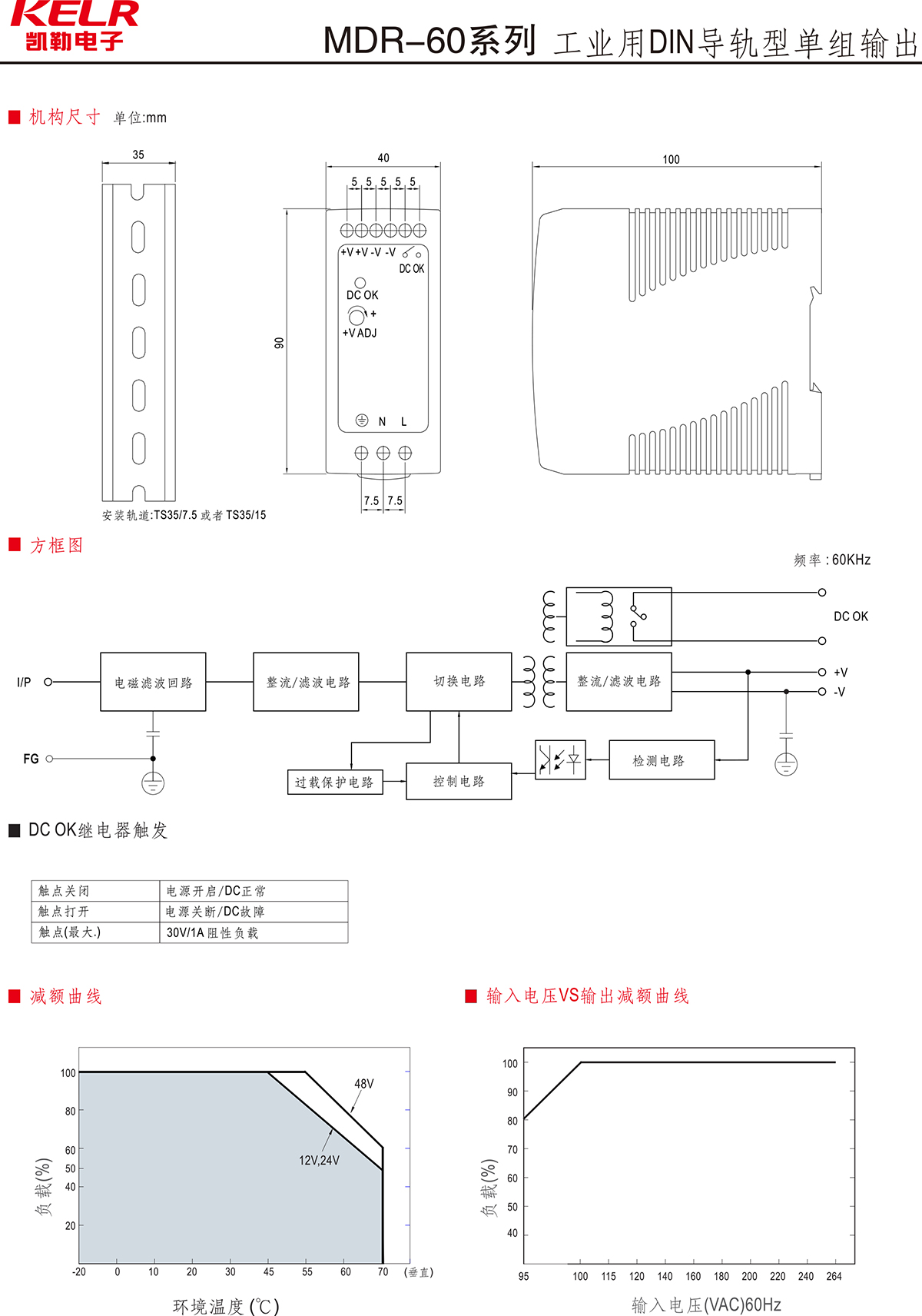 MDR-60W 系列 工业用DIN导轨型单组输出