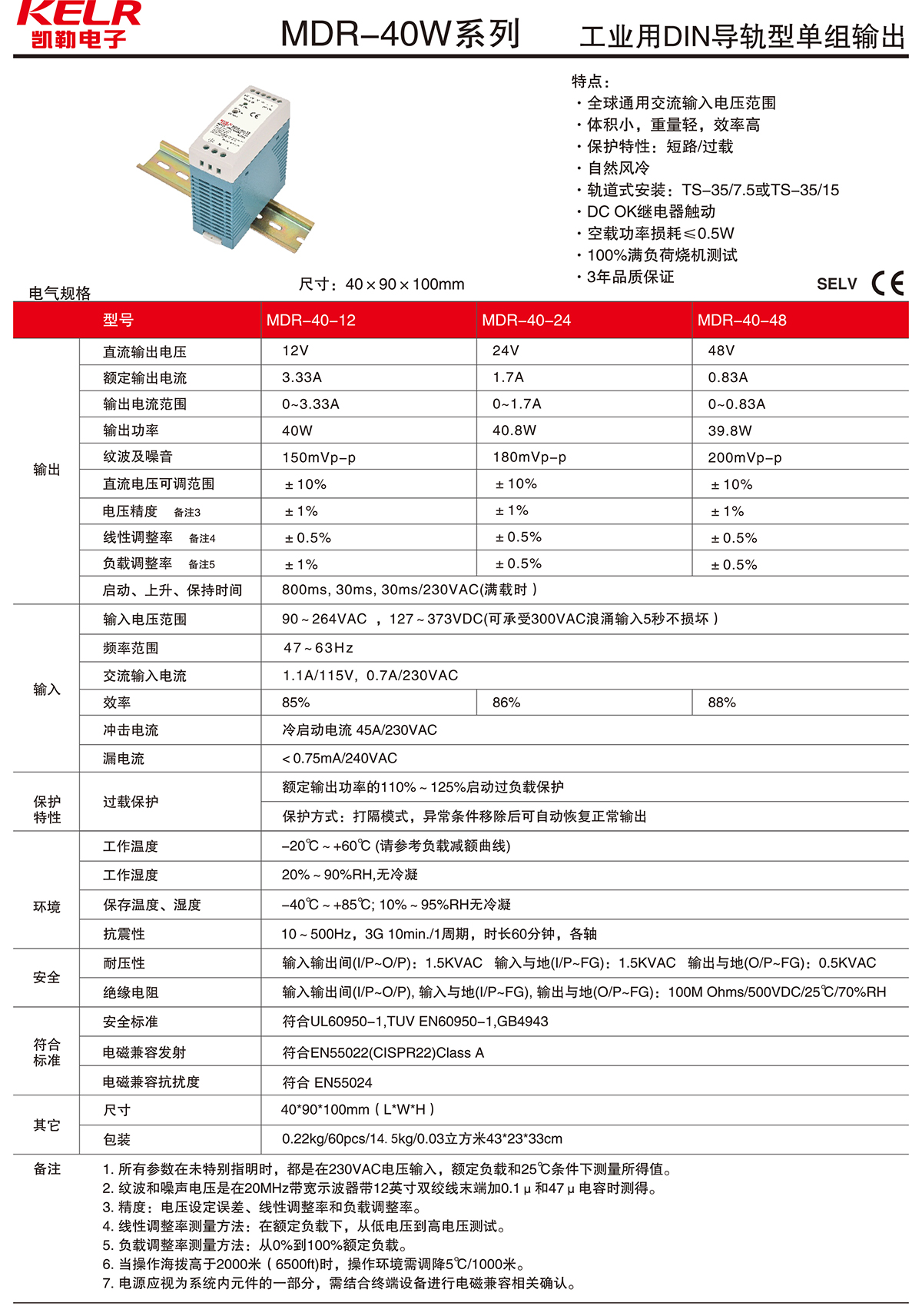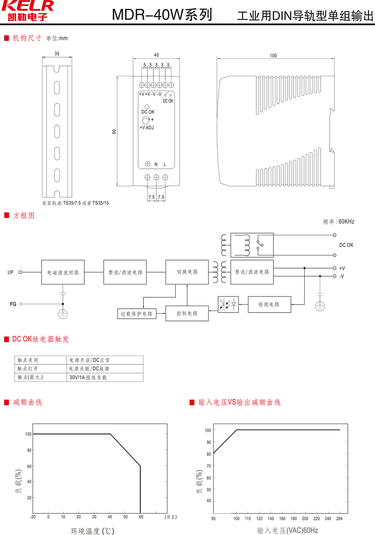 MDR-40W 系列 工业用DIN导轨型单组输出