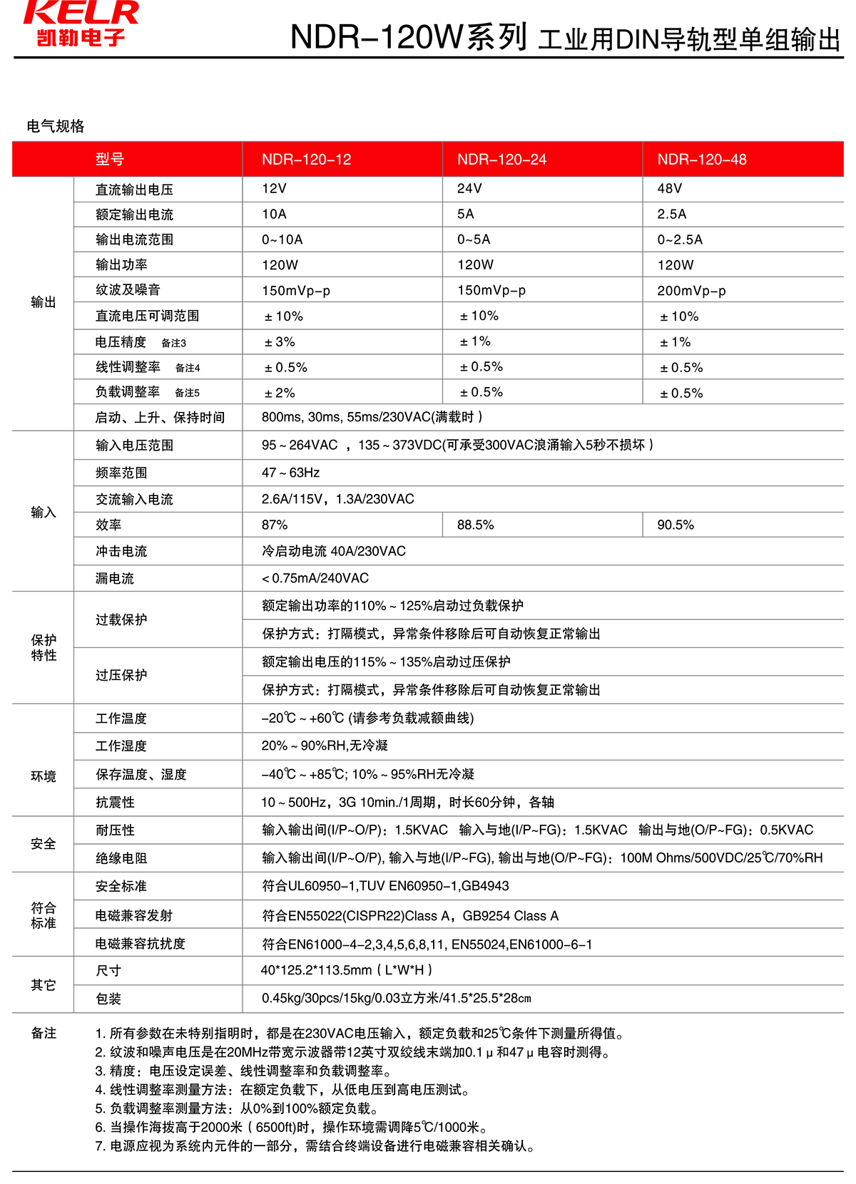 NDR-120W 系列 工业用DIN导轨型单组输出