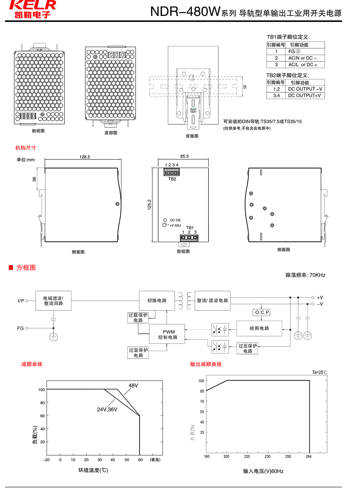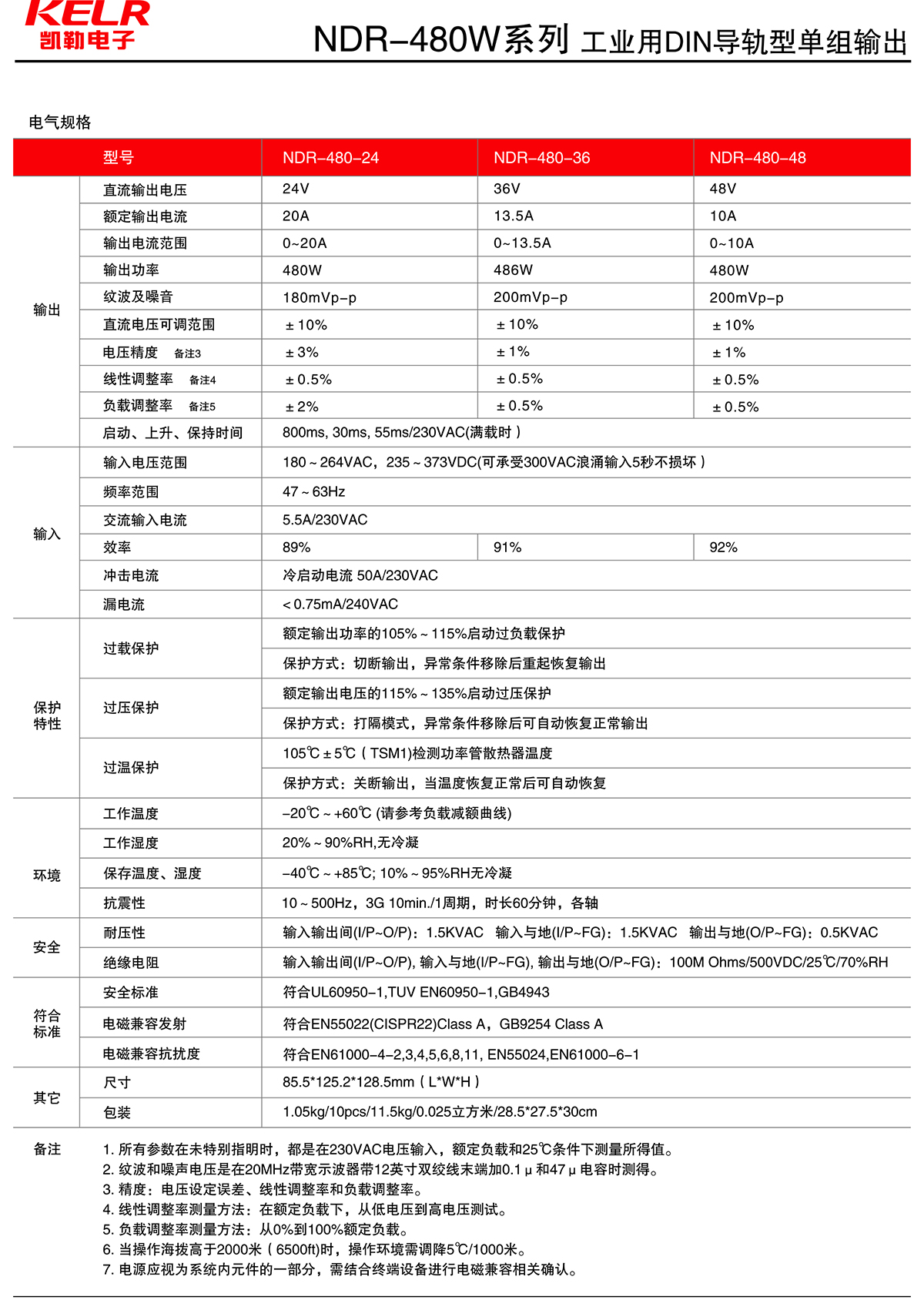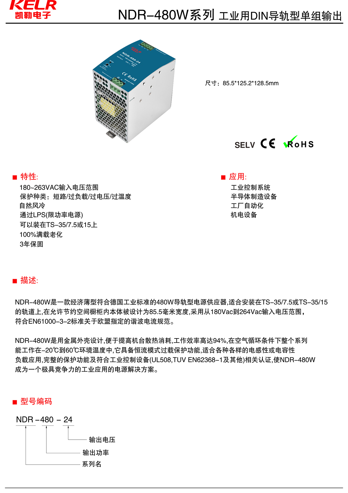 NDR-480W 系列 工业用DIN导轨型单组输出