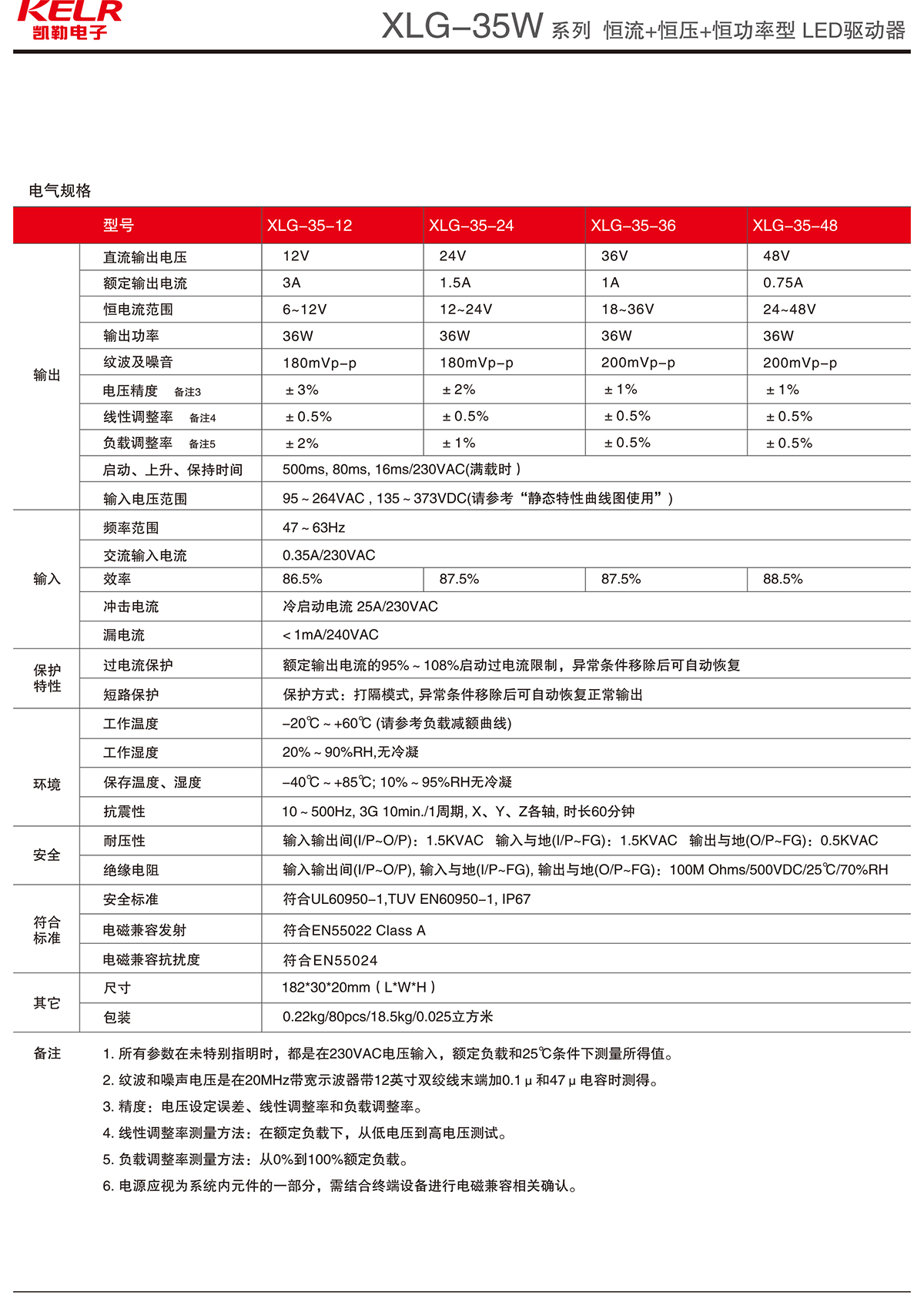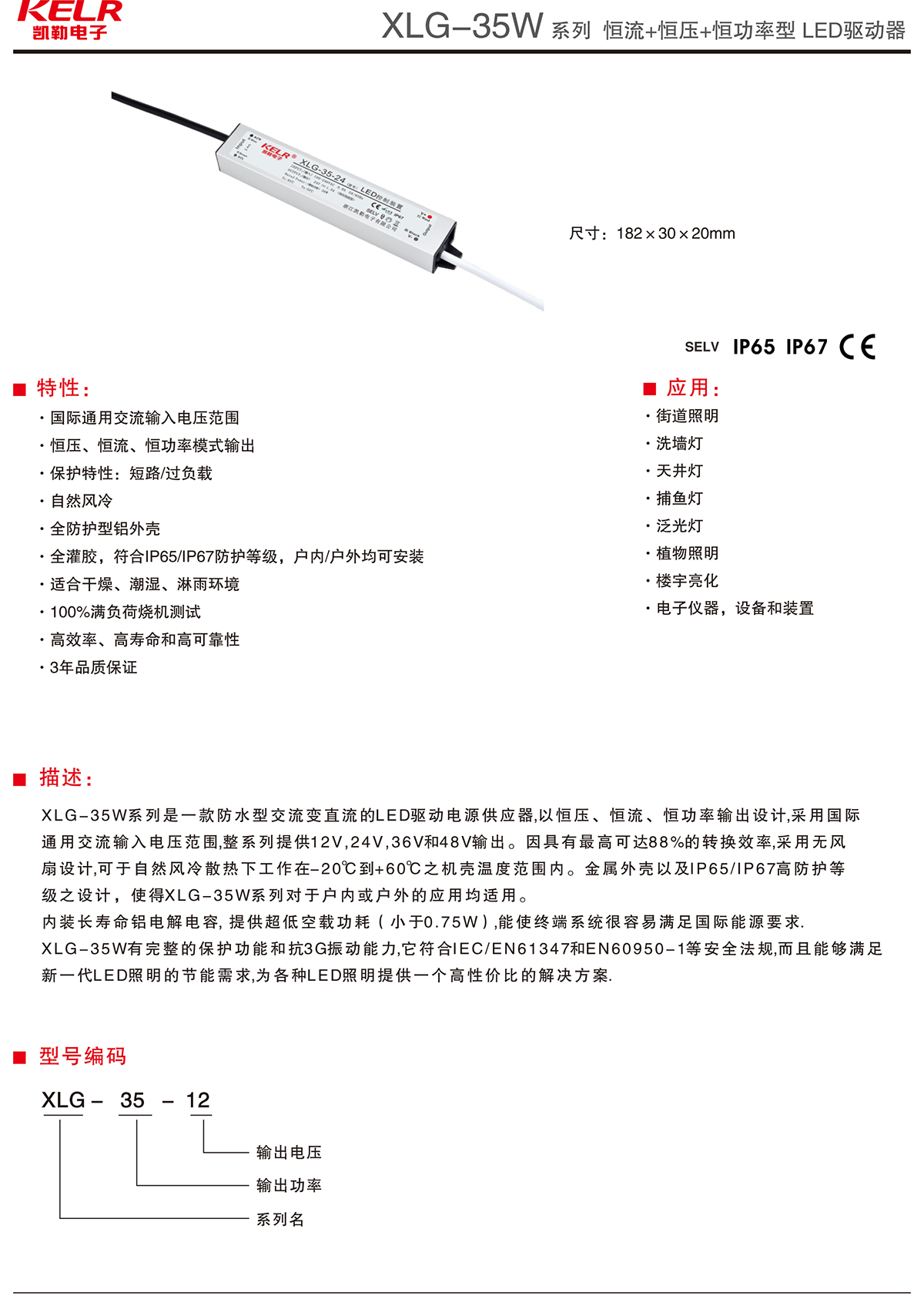 XLG-35-12 系列 恒压+恒功率型LED驱动器