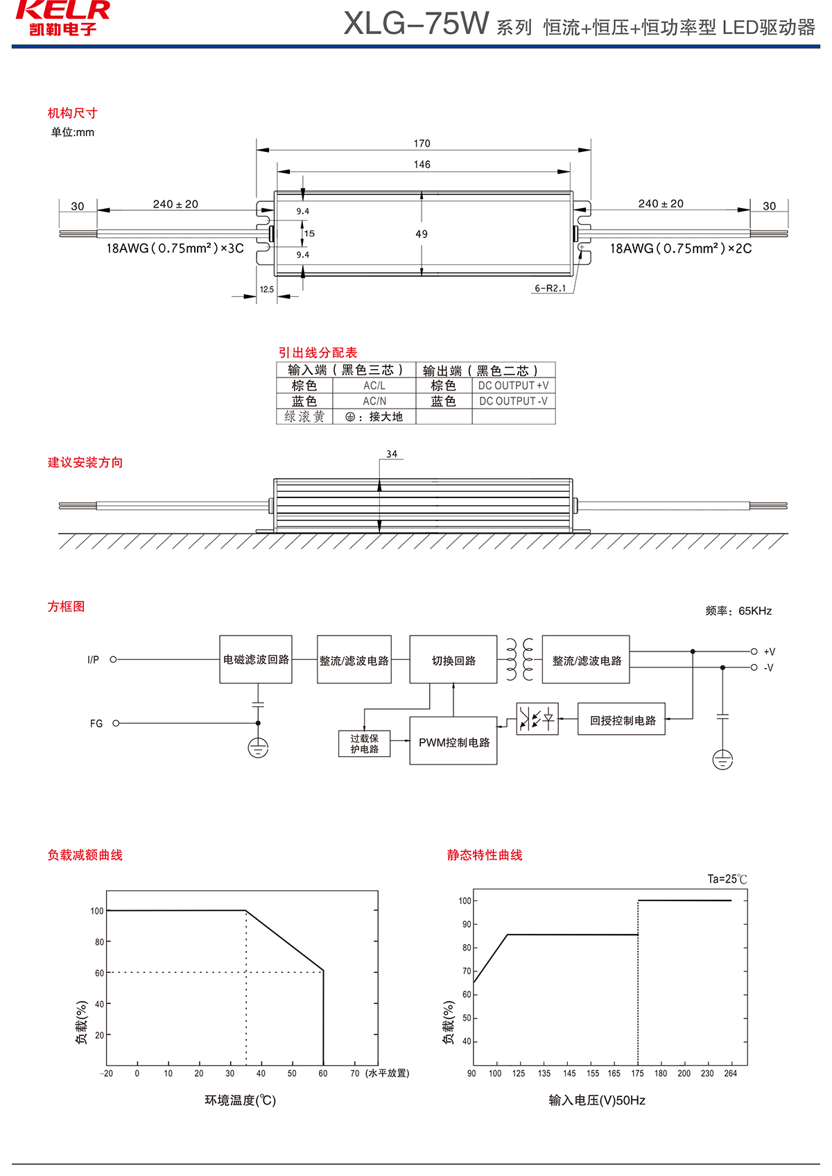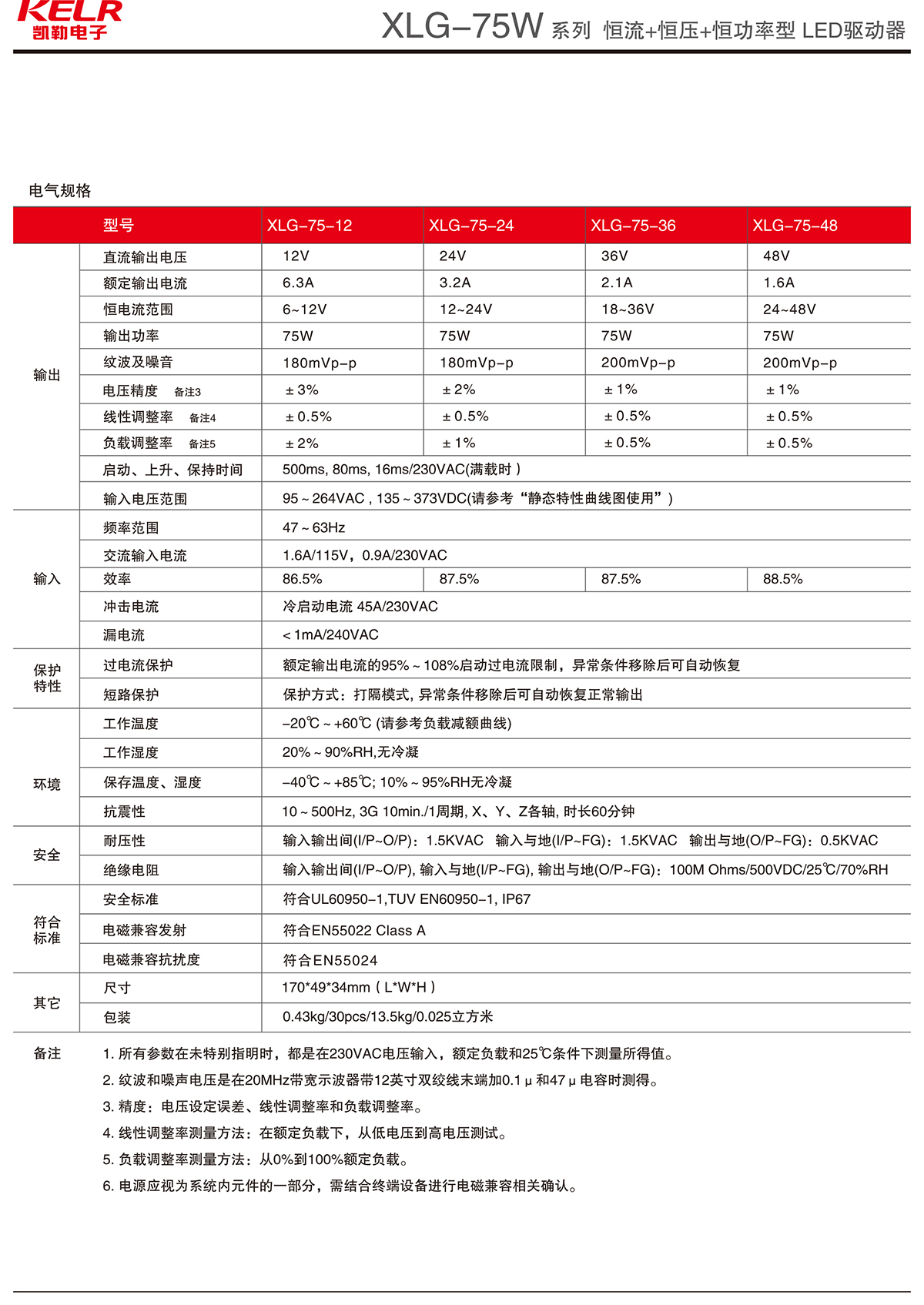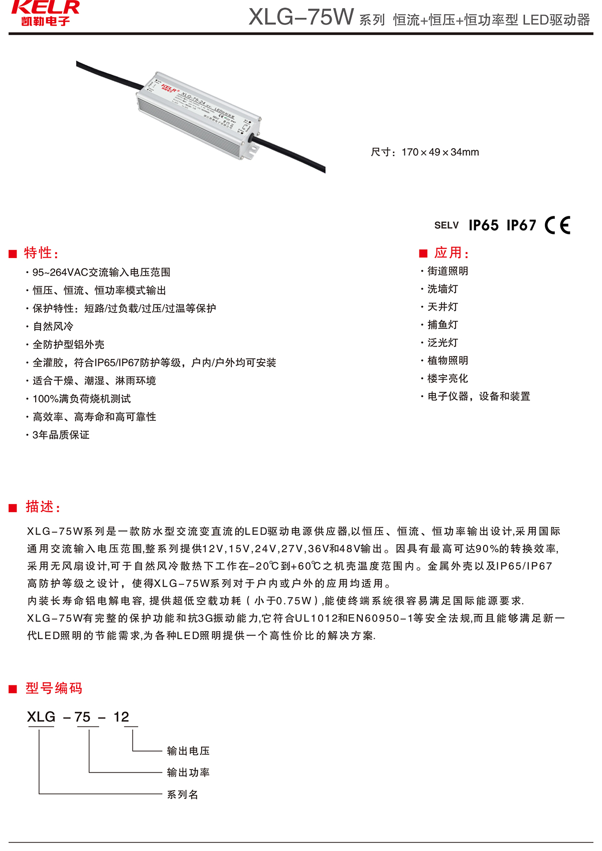 XLG-75-12 系列 恒压+恒功率型LED驱动器
