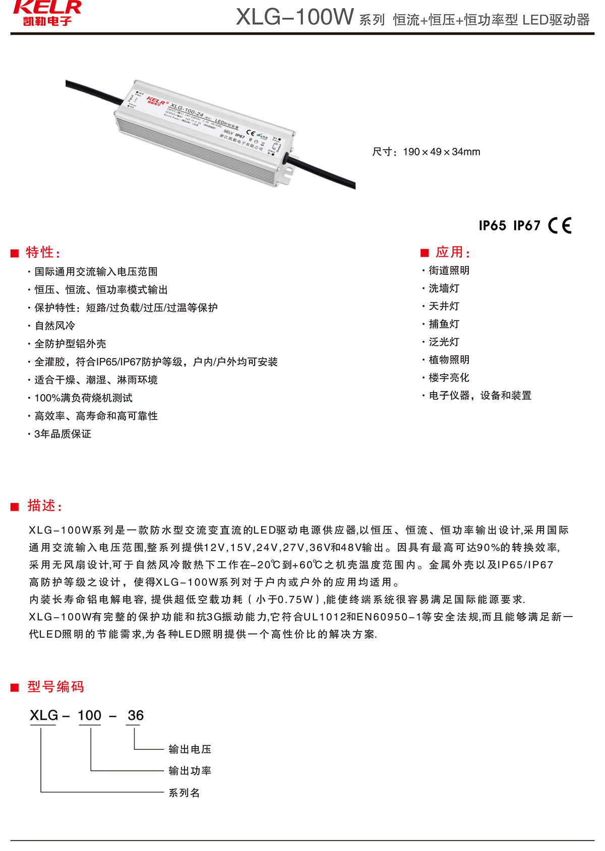 XLG-100-12 系列 恒压+恒功率型LED驱动器