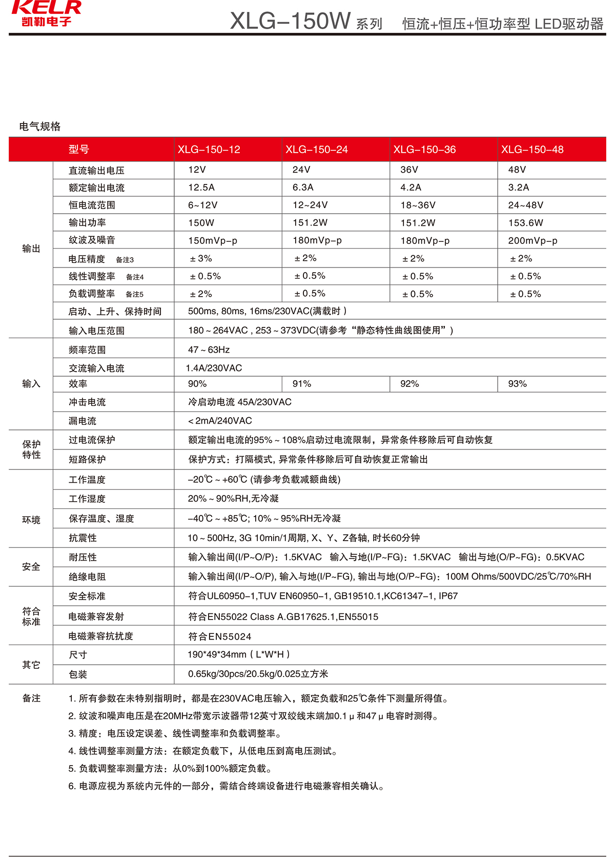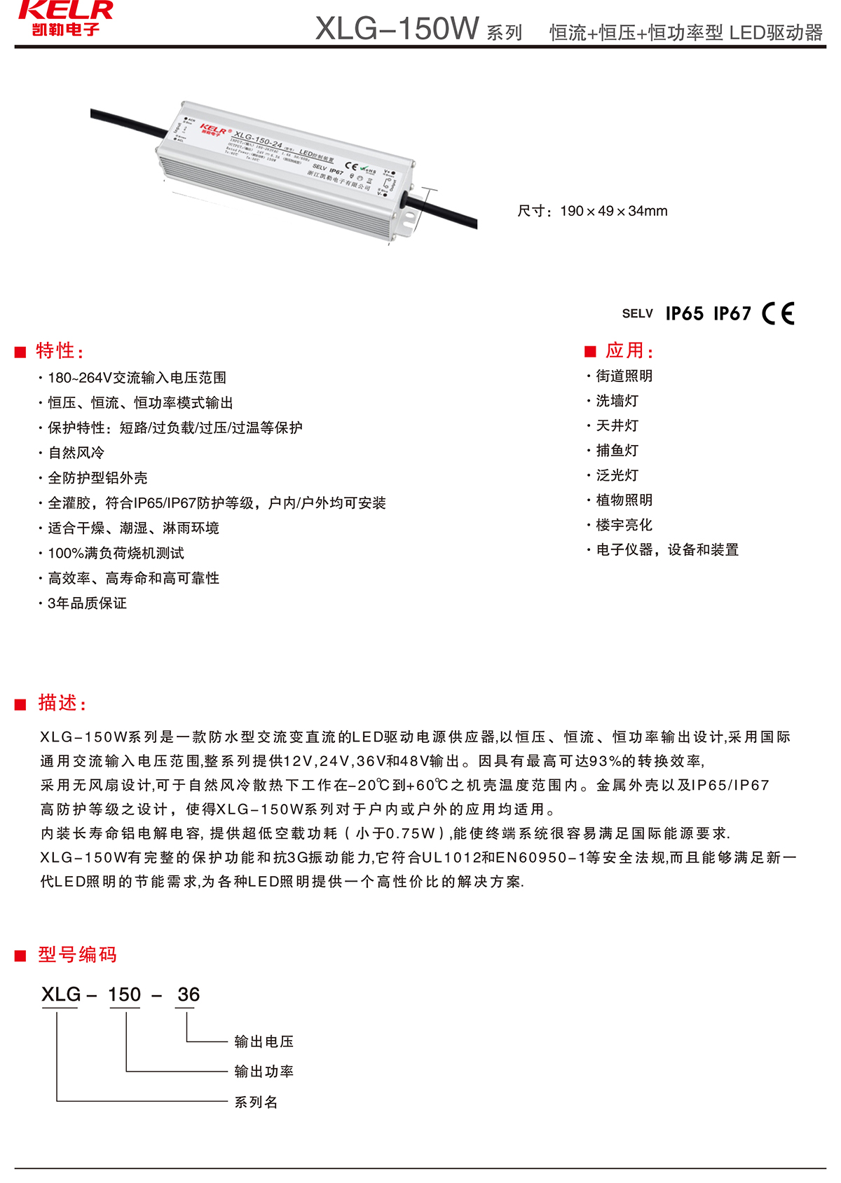 XLG-150-24 系列 恒压+恒功率型LED驱动器