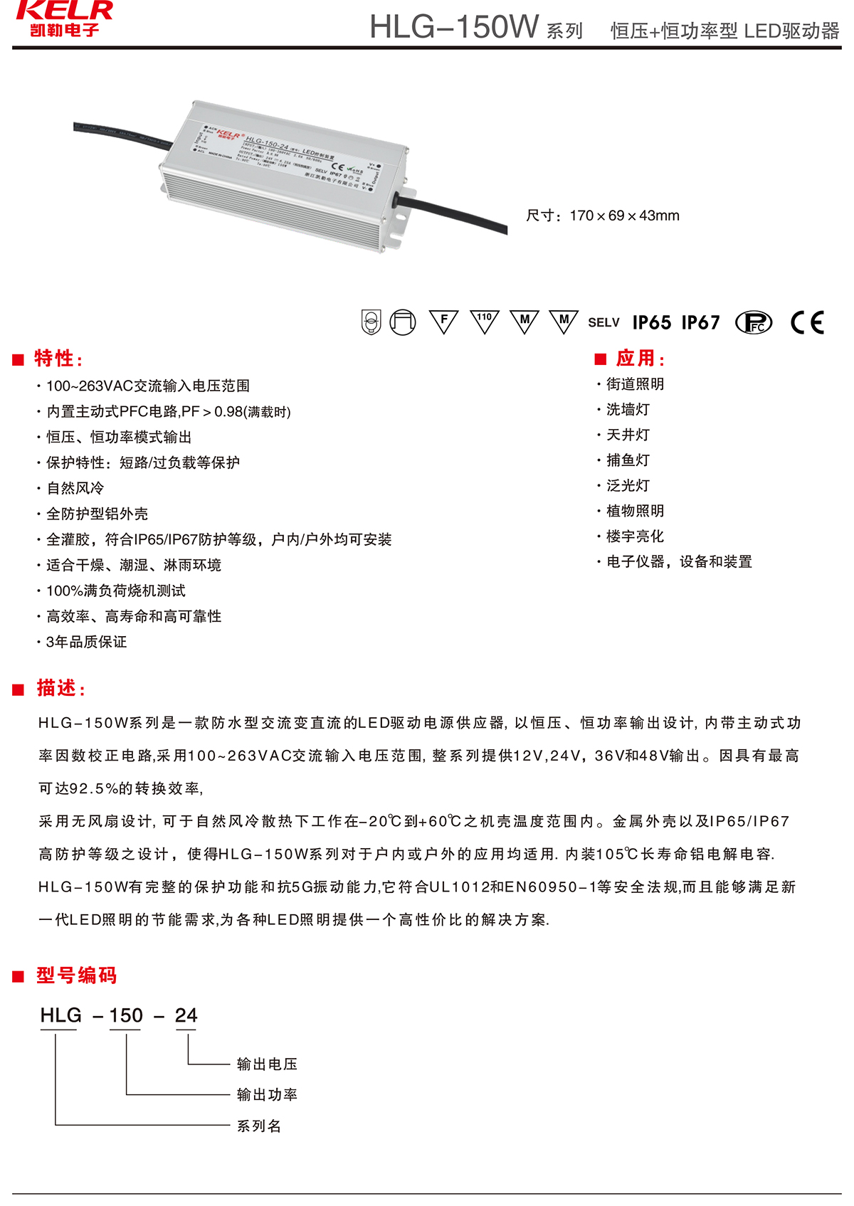 HLG-150-24 系列 恒压+恒功率型LED驱动器