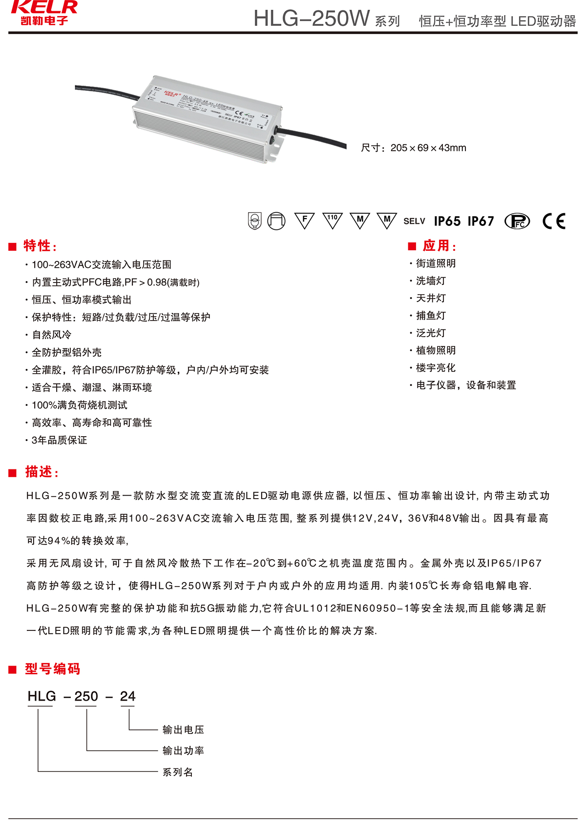 HLG-250-24 系列 恒压+恒功率型LED驱动器