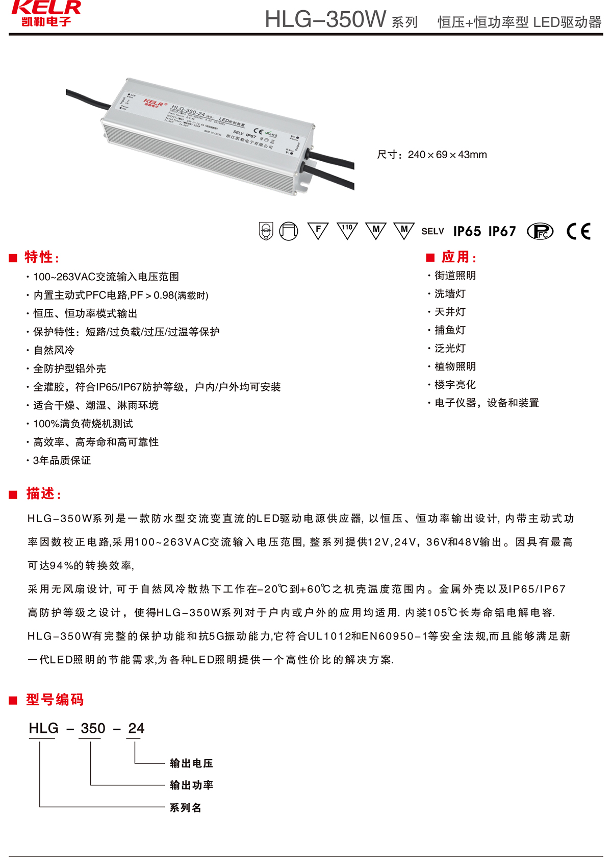 HLG-350-24 系列 恒压+恒功率型LED驱动器