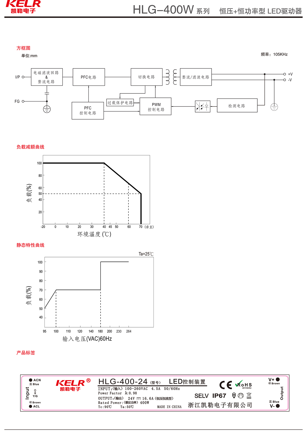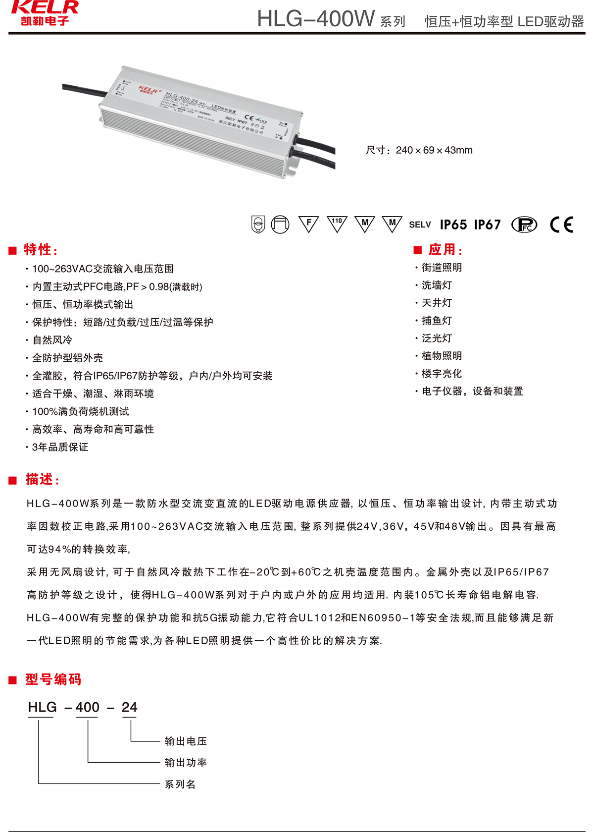 HLG-400-24 系列 恒压+恒功率型LED驱动器