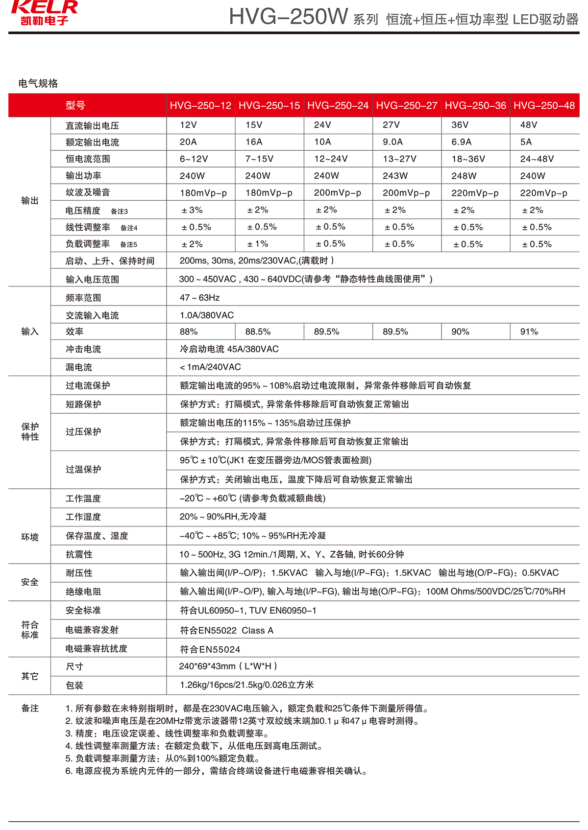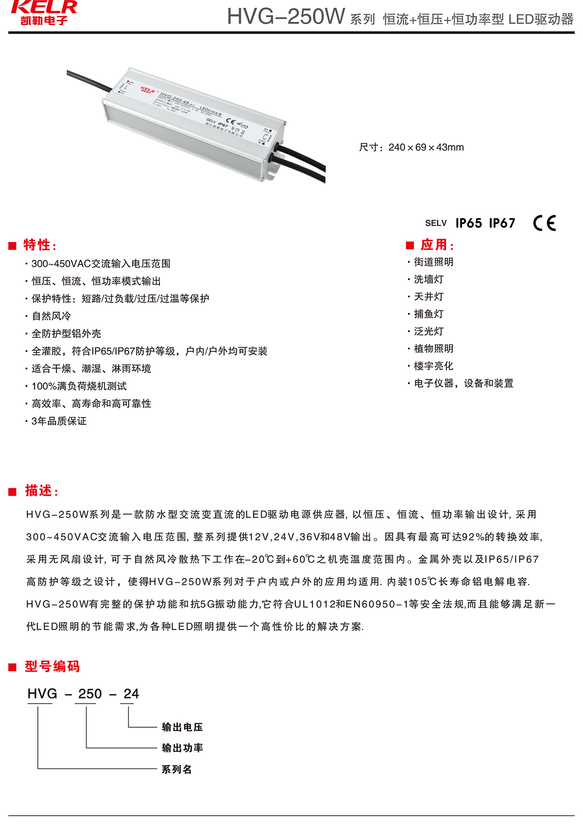 HVG-250-48 系列 恒流+恒压+恒功率型LED驱动器