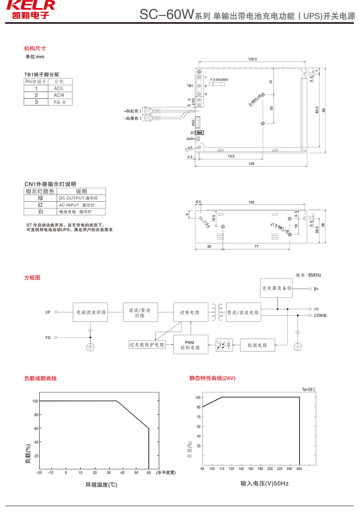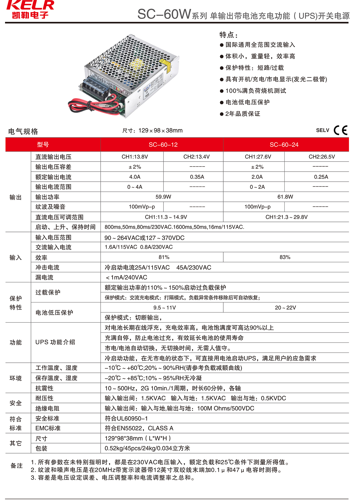 SC-60W 系列 单输出带电池充电功能(UPS)开关电源